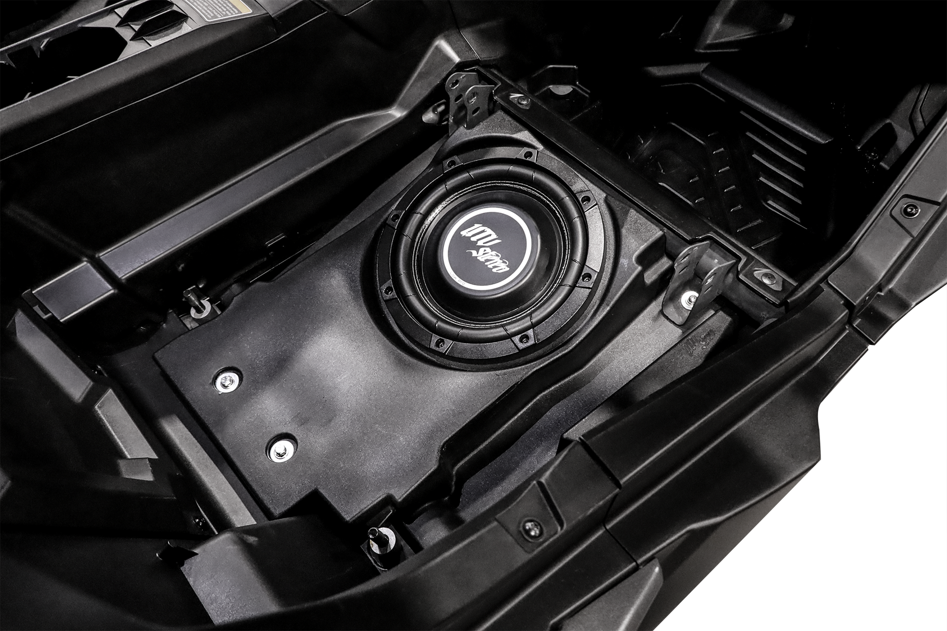 UTV Stereo has designed a 10" subwoofer enclosure compatible with the Can-Am® Maverick R Front Passenger