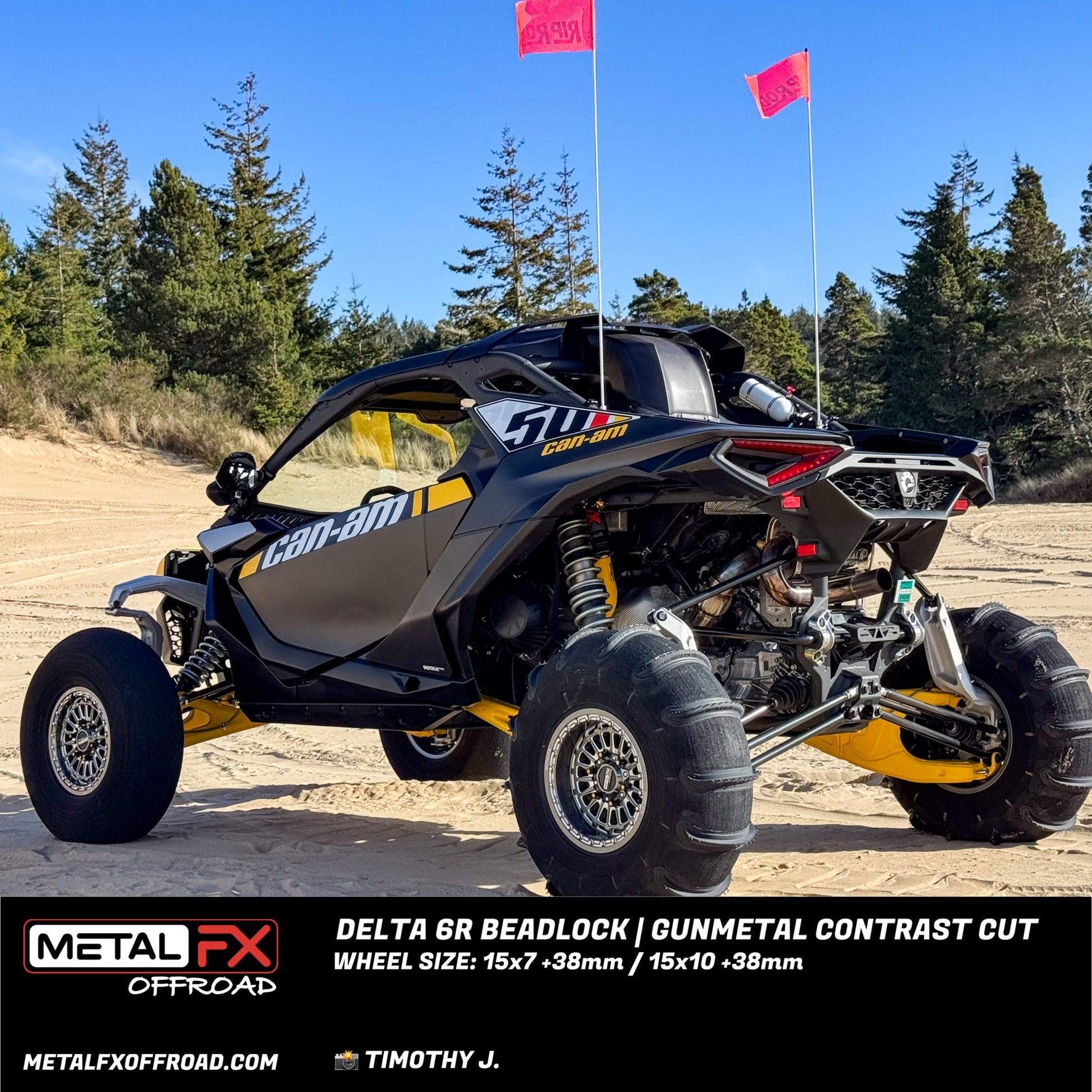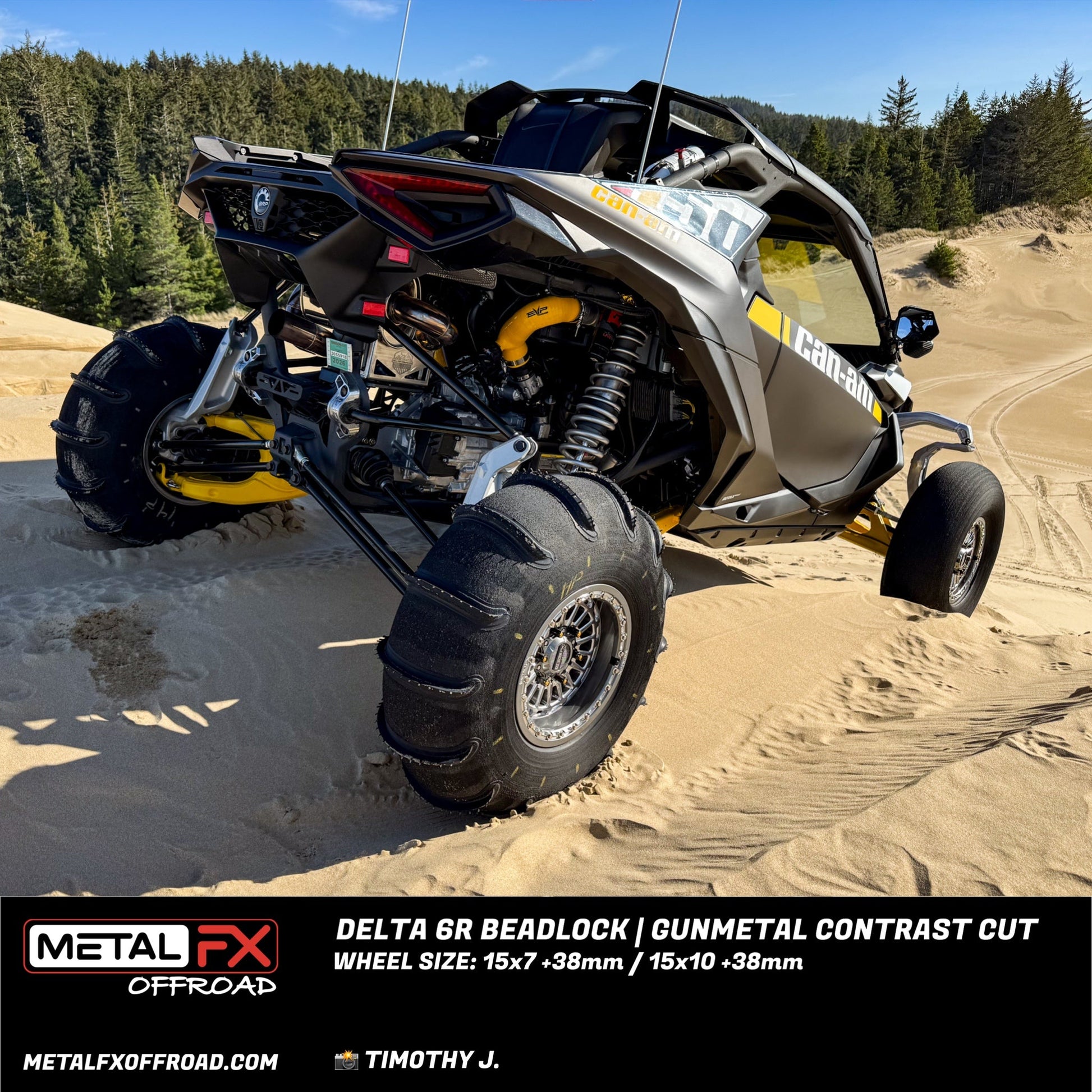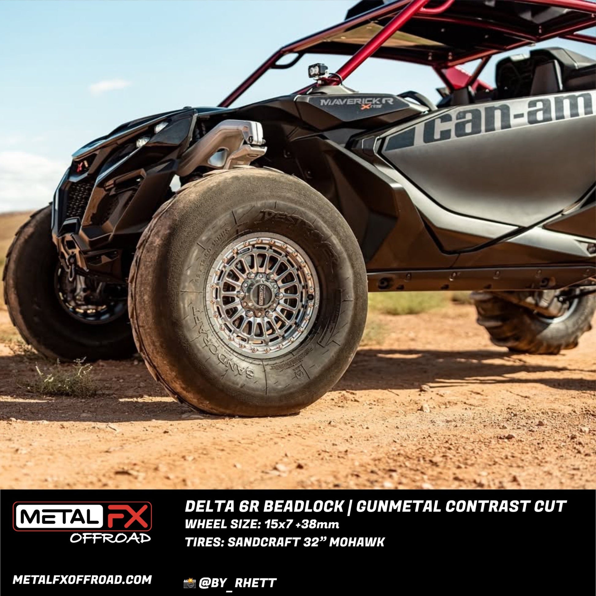 The Metal FX Offroad Delta 6R UTV Wheel combines our technical expertise with uncompromised attention to detail creating the ultimate in style and performance. The design of the Delta 6R includes a unique concave Center and a 6061- T6 Forged Aluminum Beadlock for enhanced strength and durability. Each model in the Metal FX Offroad Delta 6R Series is designed specifically for Can-Am Maverick R 6-Lug platforms.