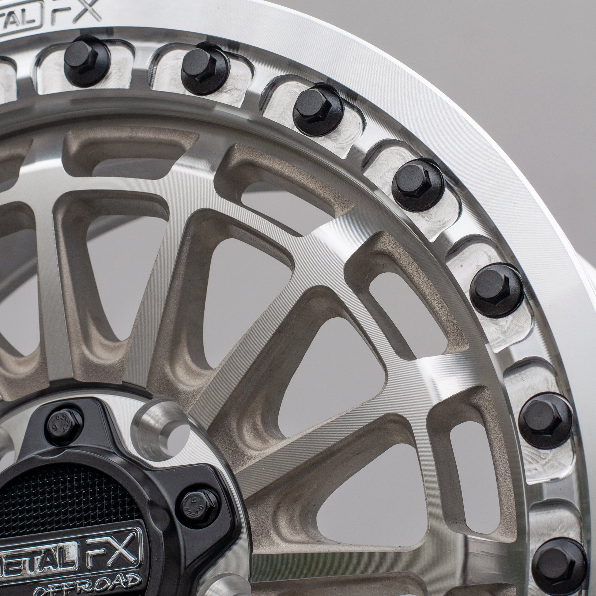 The Metal FX Offroad Delta R UTV Wheel combines our technical expertise with uncompromised attention to detail creating the ultimate in style and performance. The design of the Delta R includes a unique concave center and a 6061-T6 Billet Beadlock for enhanced strength and durability. Each model in the Metal FX Offroad R-Series is designed specifically for Polaris 5-Lug & Segway Super Villain platforms.