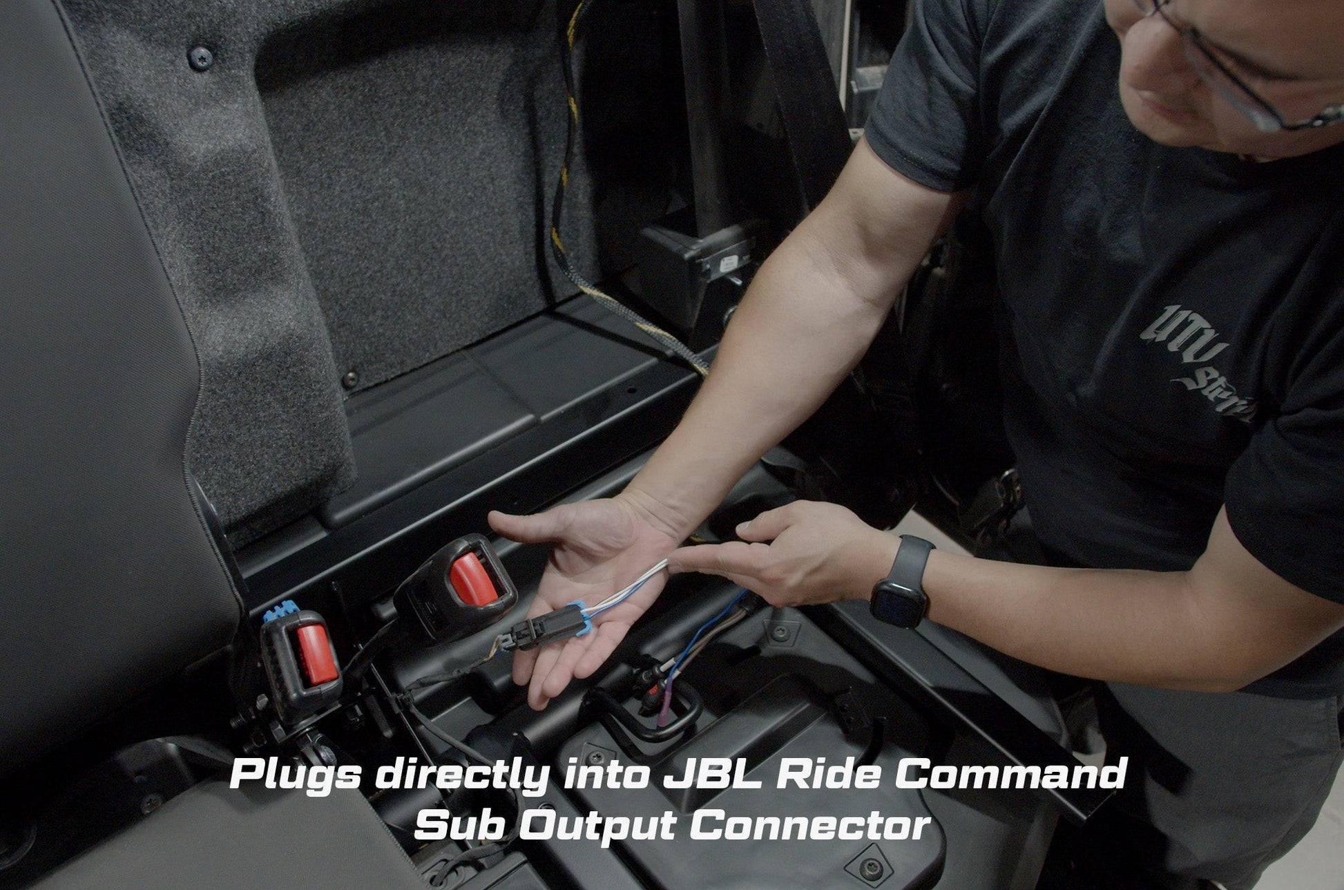 - Plugs directly into JBL Ride Command Sub Output Connector and provides remote output